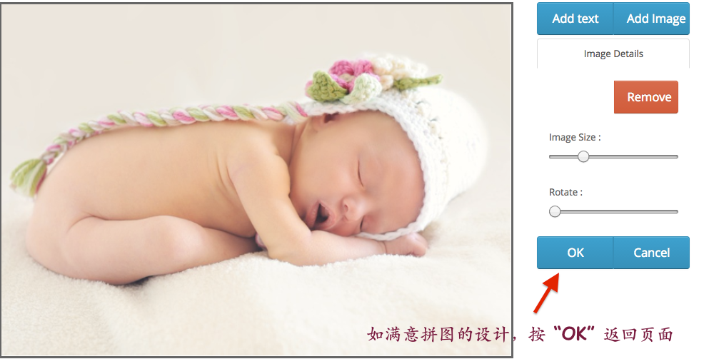 5. Click "Add Image" to select and add image. Click "Ok" to continue with the order once design is finalised.