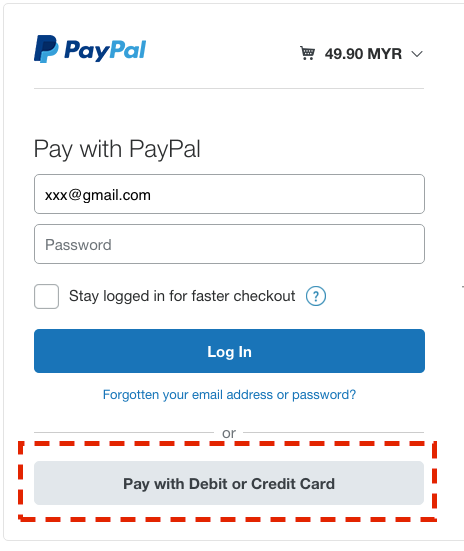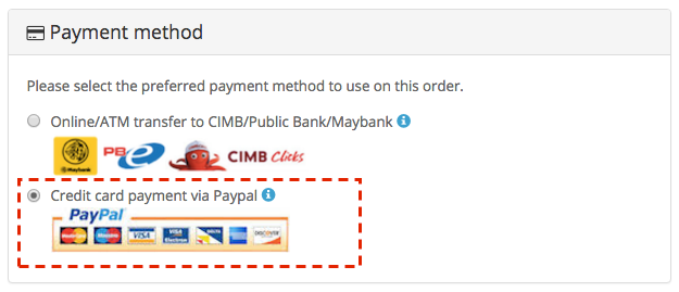 1. Select “Credit card payment via Paypal"